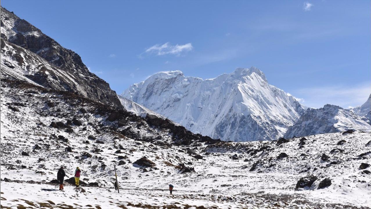 第二天天刚亮,其中一名队友阿峰的登山杖和徒步鞋,就被土拨鼠叼走了,这一变故也让他心里产生了想要放弃穿越的念头,但来都来了的侥幸心理还是占据了上风,他最终穿着队友的拖鞋继续前进。